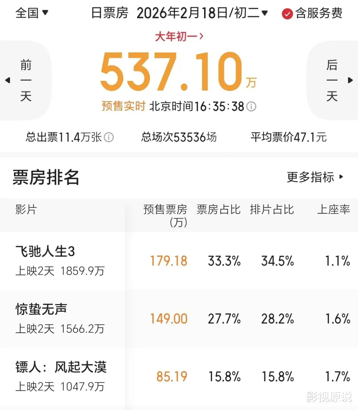 毕竟依照目前的各种表现来看,《飞驰人生3》都可以说是遥遥领先于春节档的其它电影作品,预售第一、想看人数第一、排片量也是第一。