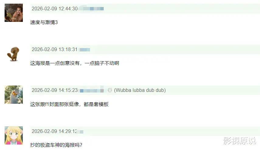 因此不少观众都评论说:“《飞驰人生3》的海报一点创意都没有,感觉它就是在抄袭好莱坞的《F1:狂飙飞车》”。