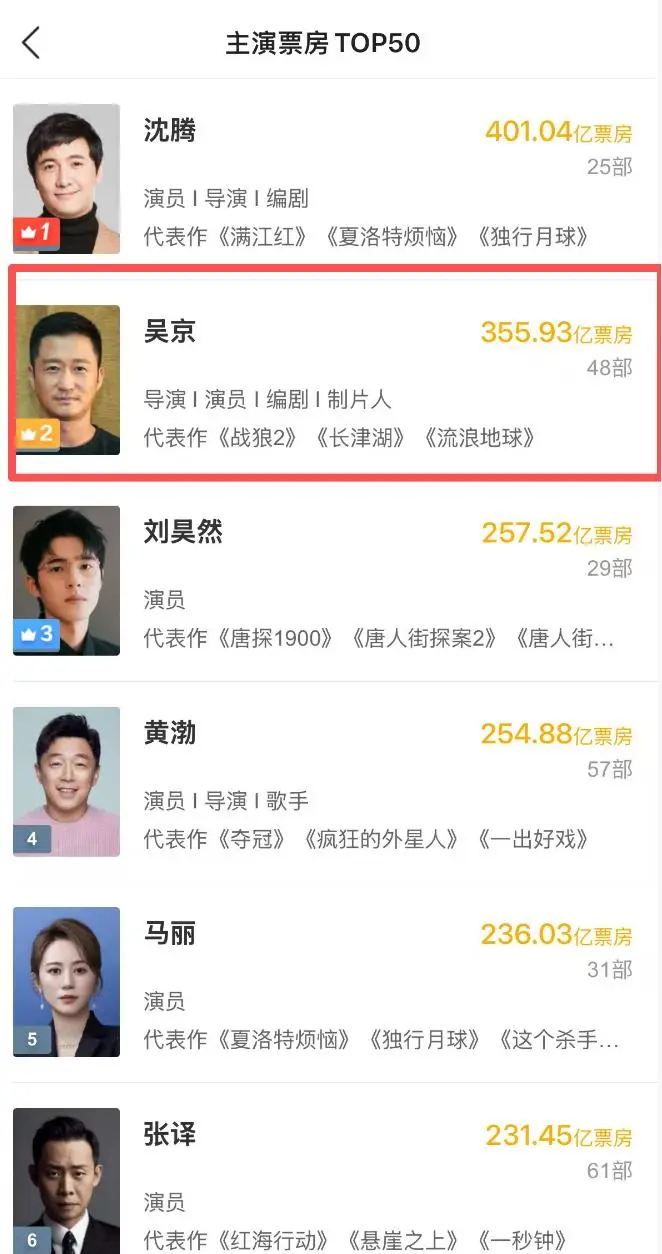 吴京的号召力极强,是主演票房榜的第二名,个人总票房超过了355亿,但也摆脱不了新片票房“倒挂9天”的尴尬啊。可见,对于动作演员们来讲,现在收票房也不像以前那么简单了,只有全方面的给力和在线,观众们才会去影院支持啊。