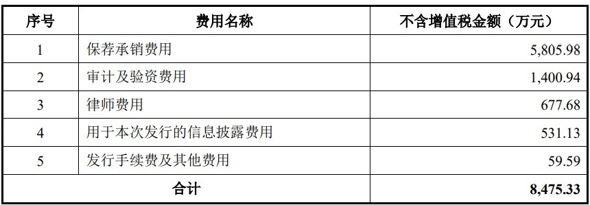 公司公开发行新股的发行费用合计 8,475.33 万元(不含增值税),其中保荐承销费用 5,805.98万元。