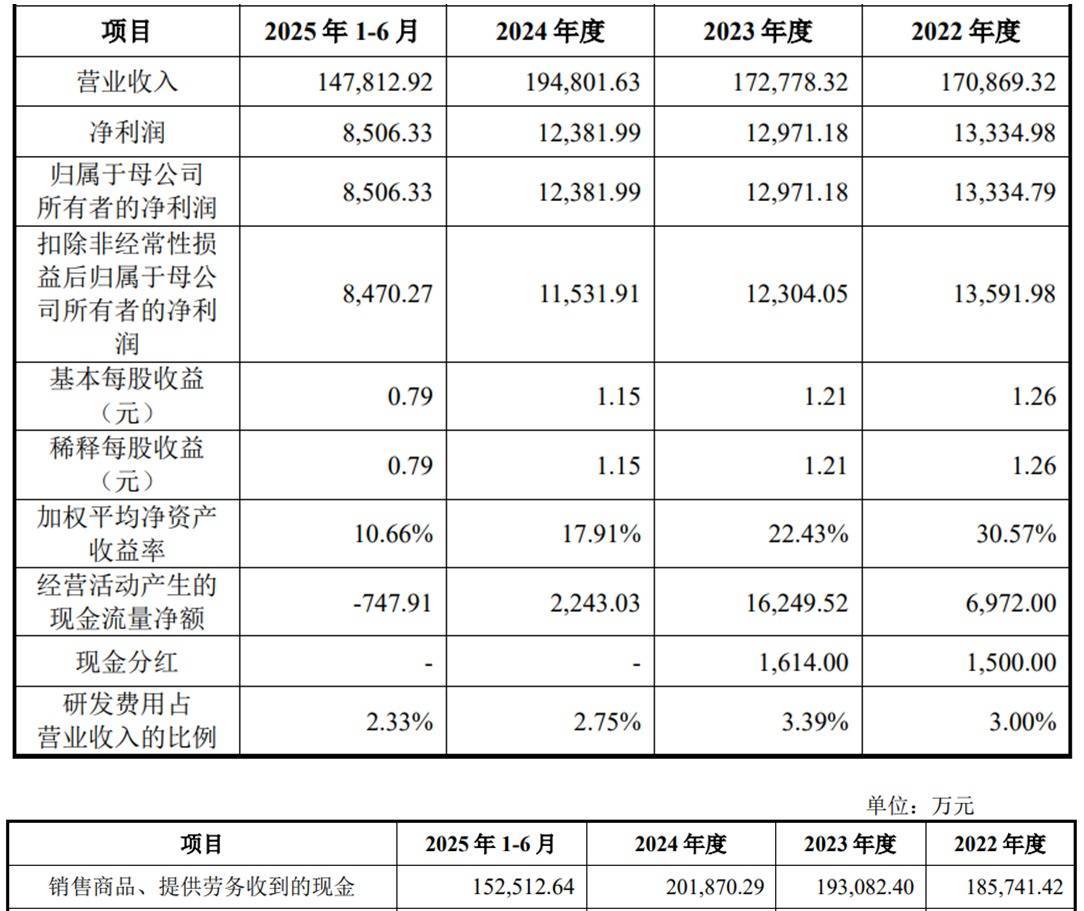 上述同期,公司销售商品、提供劳务收到的现金分别为185,741.42万元、193,082.40万元、201,870.29万元;经营活动产生的现金流量净额分别为 6,972.00 万元、16,249.52 万元、2,243.03 万元。