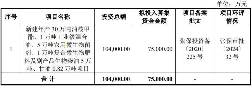 丰倍生物本次发行募集资金总额87,919.1000万元,扣除发行费用后募集资金净额为79,443.7747万元,比原计划多4443.7747万元。丰倍生物10月31日披露的招股书显示,公司拟募集资金75,000.00万元,用于新建年产30万吨油酸甲酯、1万吨工业级混合油、5万吨农用微生物菌剂、1万吨复合微生物肥料及副产品生物柴油5万吨、甘油0.82万吨项目。