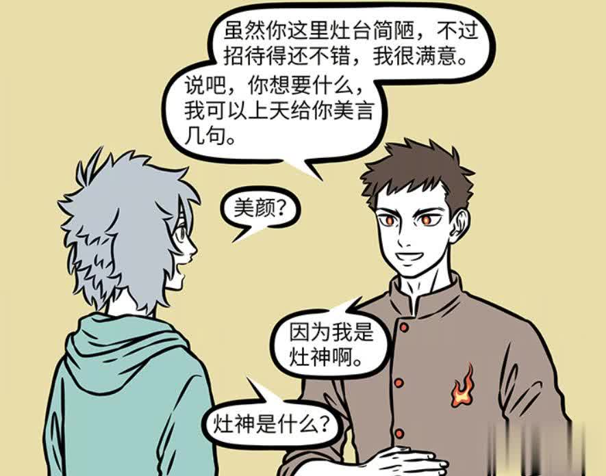 吃了哮天准备的酒菜糖果之后,灶王爷那是心满意足。此时灶王爷不再怪罪哮天,灶台虽然很简陋,但是招待的很不错,他很满意。灶王爷问哮天,想要什么?他上天之后,可以给他美言几句。哮天误以为美言是“美颜”,也不知道灶神是什么?