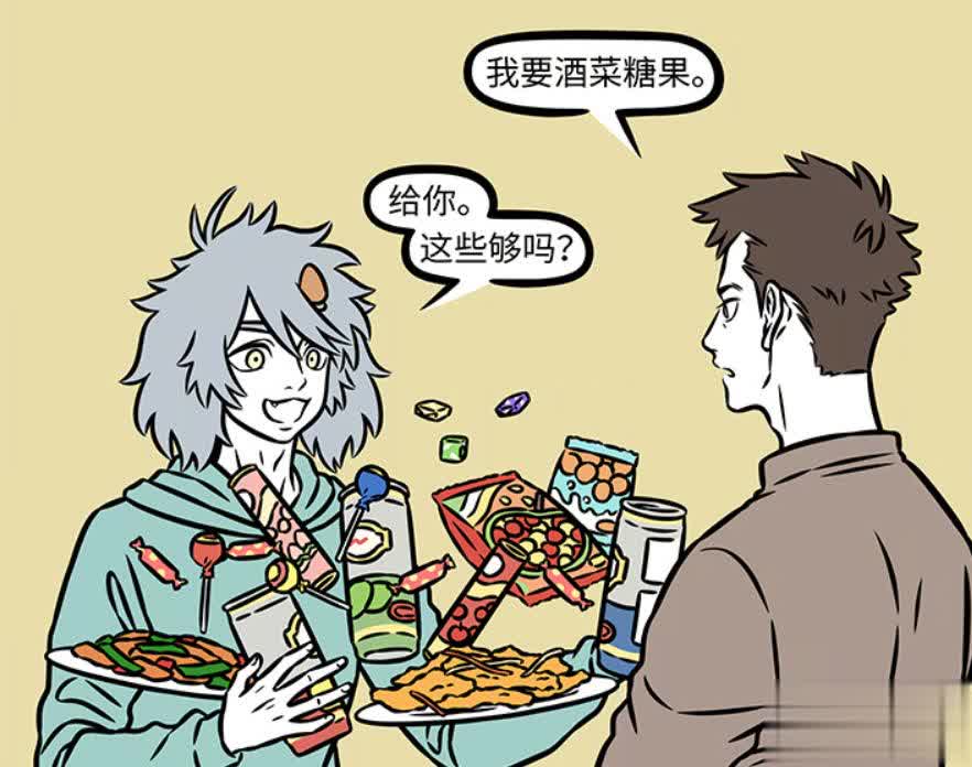 谁能想到哮天盛情款待,拿出了好多零食、饮料、酒水、炒菜、糖果等等。灶王爷也只是要一些酒菜糖果,没想到哮天准备了这么多。想想前面那几年,灶王爷还喝过料酒、吃过期的食物。在哮天这里,简直就是最高级别的待遇。